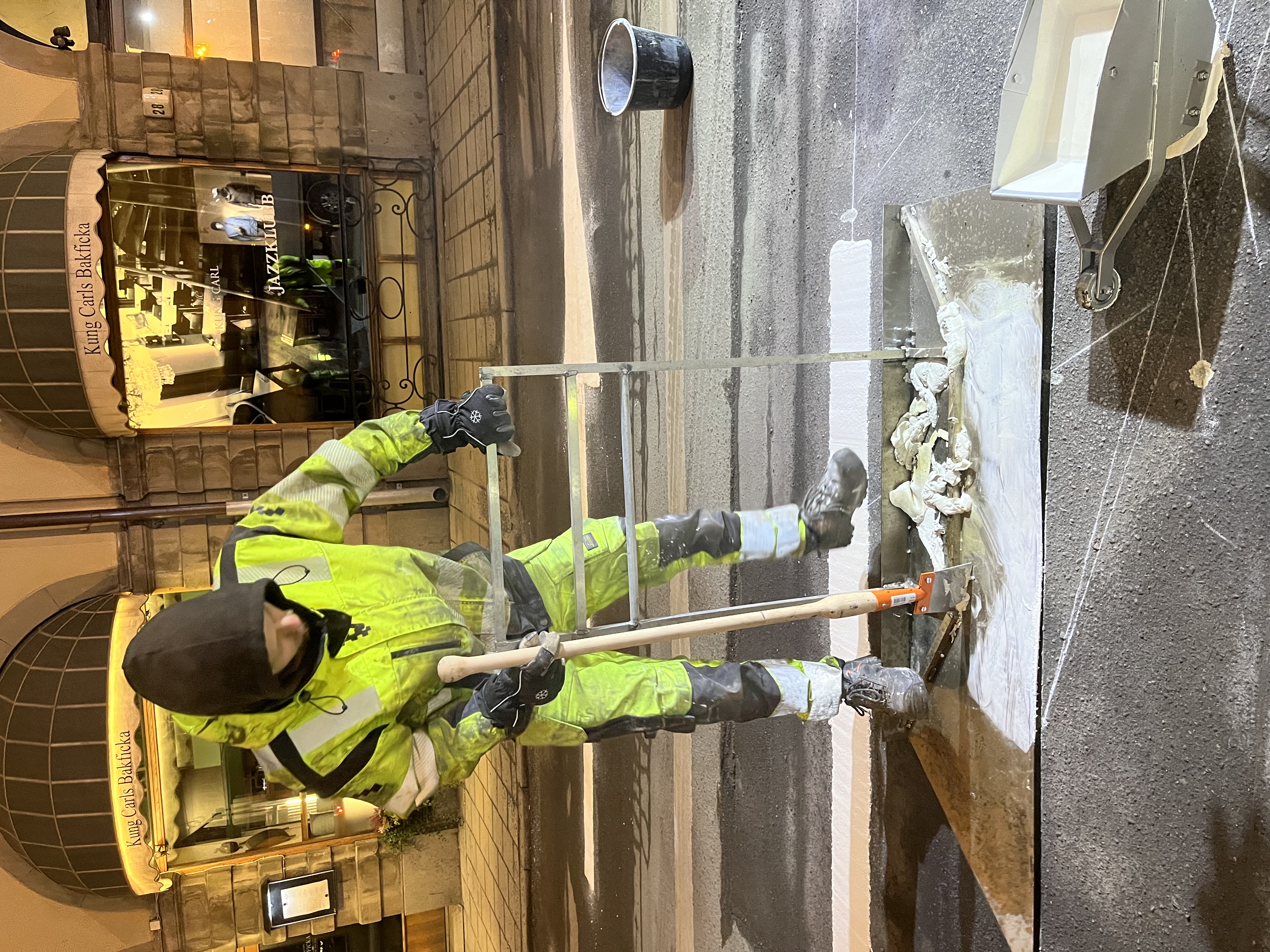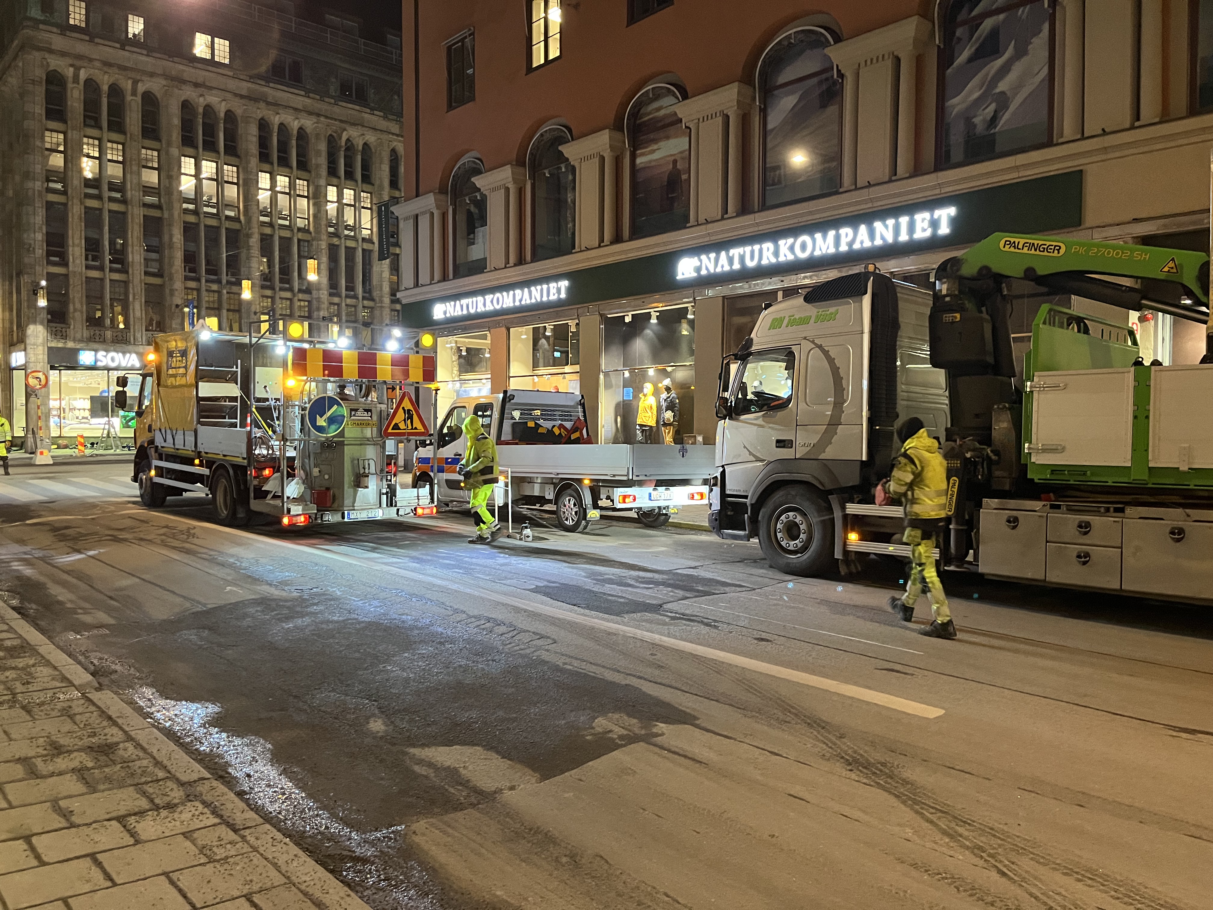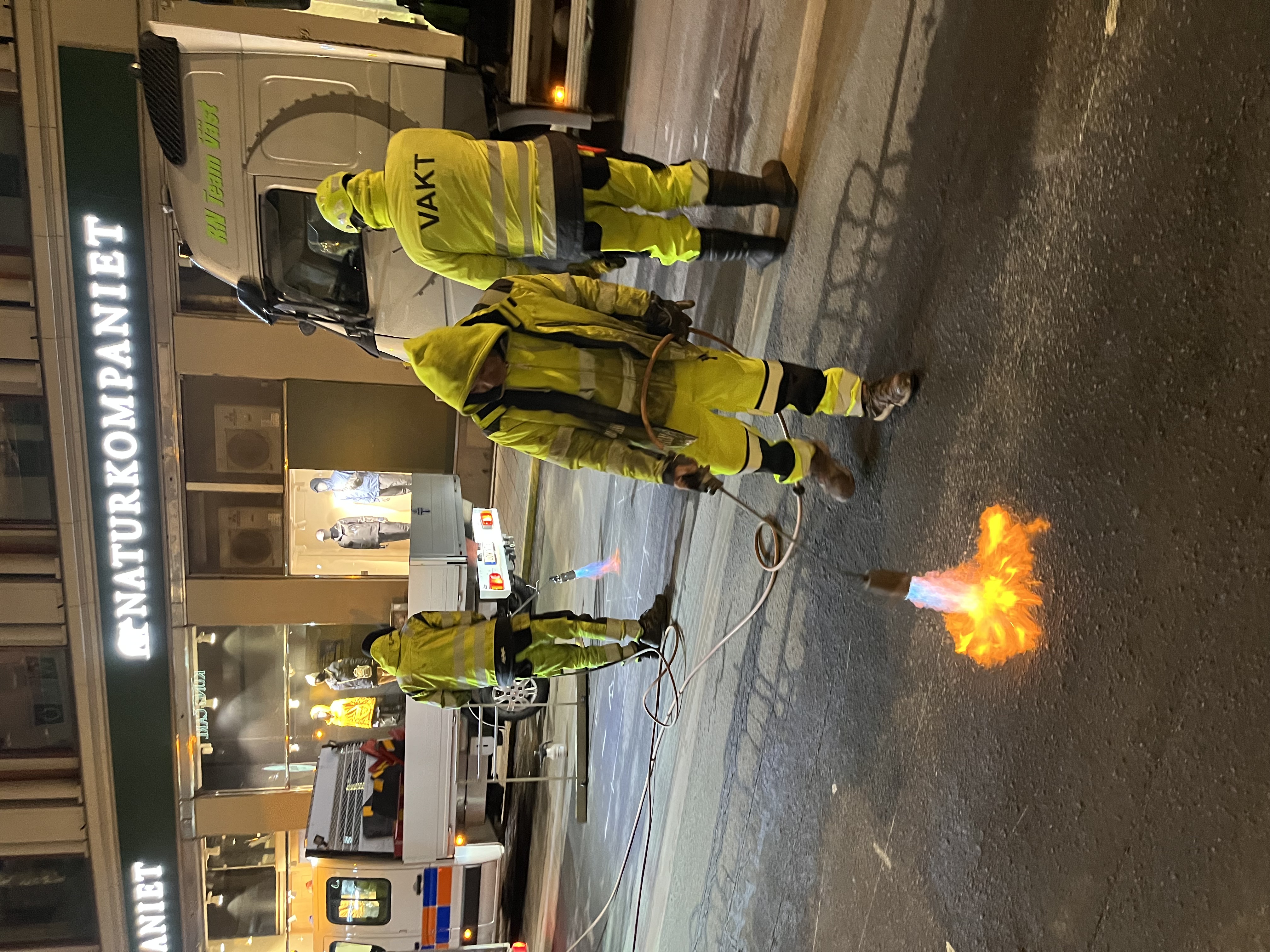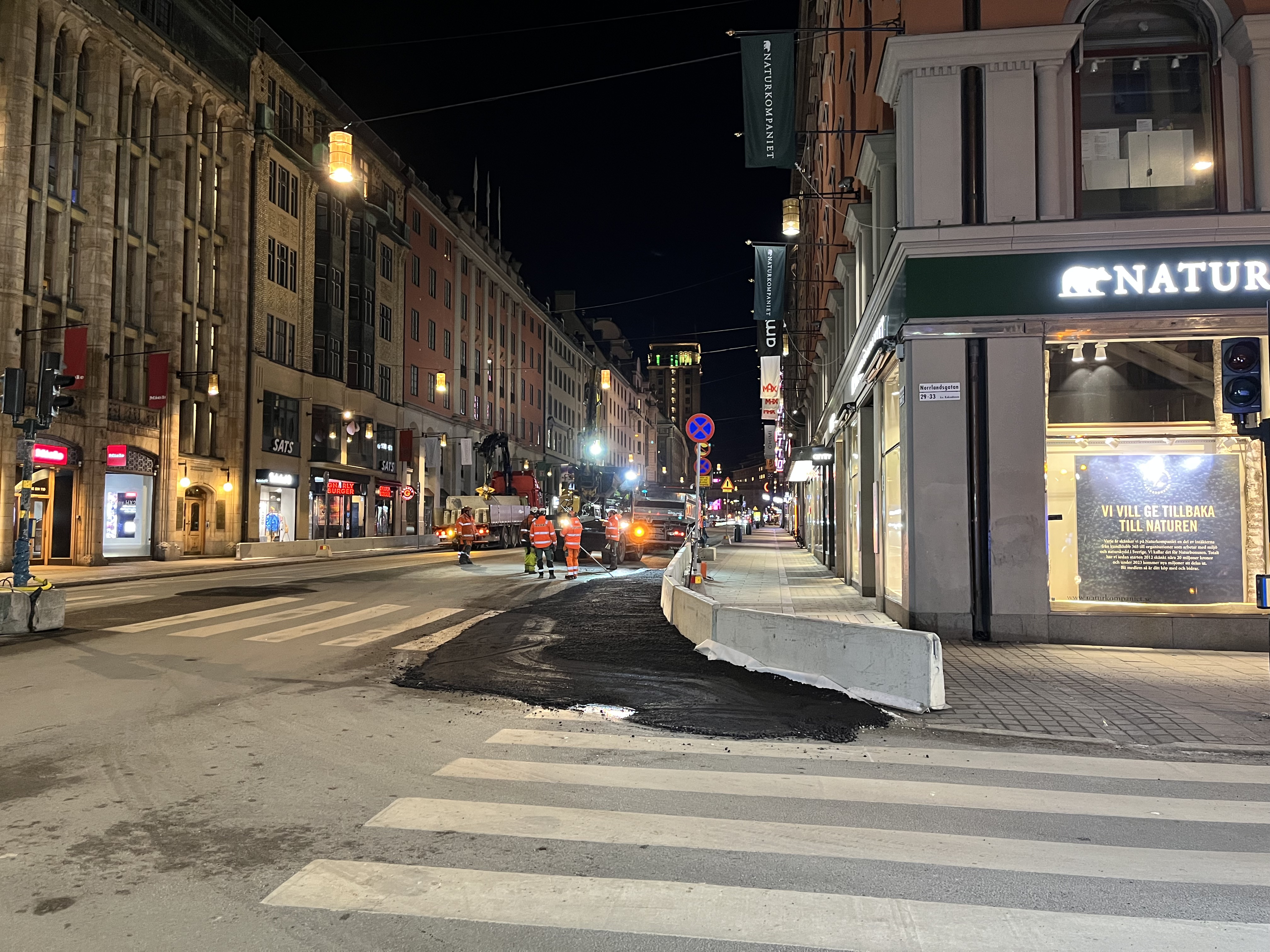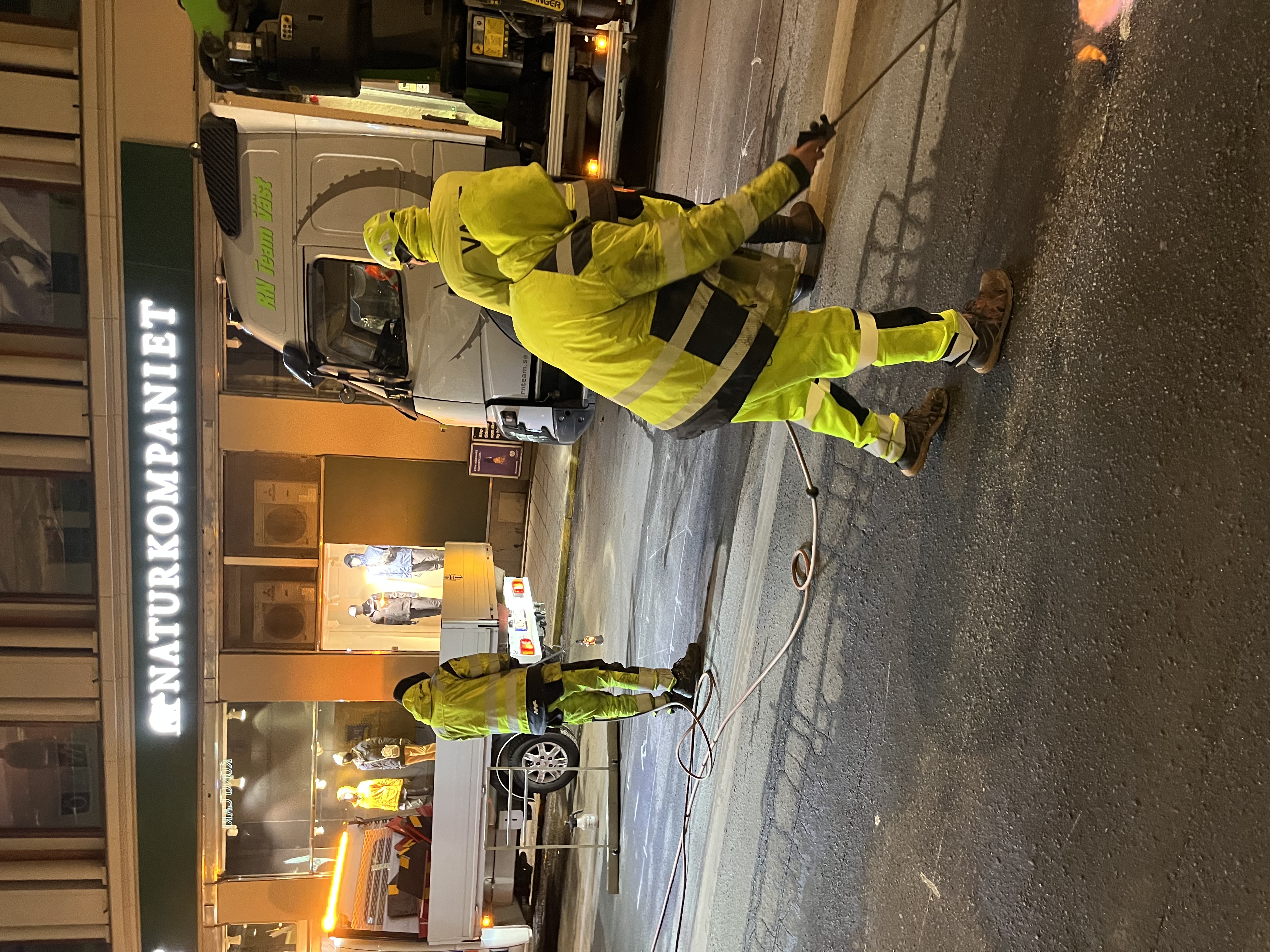 Vi utför tvär- och längsgående vägmarkering med termoplastisk vägmarkeringsmassa. Termoplastmassan hettas upp till 200 grader och läggs ut med handskopor eller extruderbil. Linjerna läggs med tjocklek på ca: 3 mm. Termoplasten innehåller 20% glaspärlor för att ge reflektans. Vi målar vägar, parkeringar gång- och cykelbanor mm.