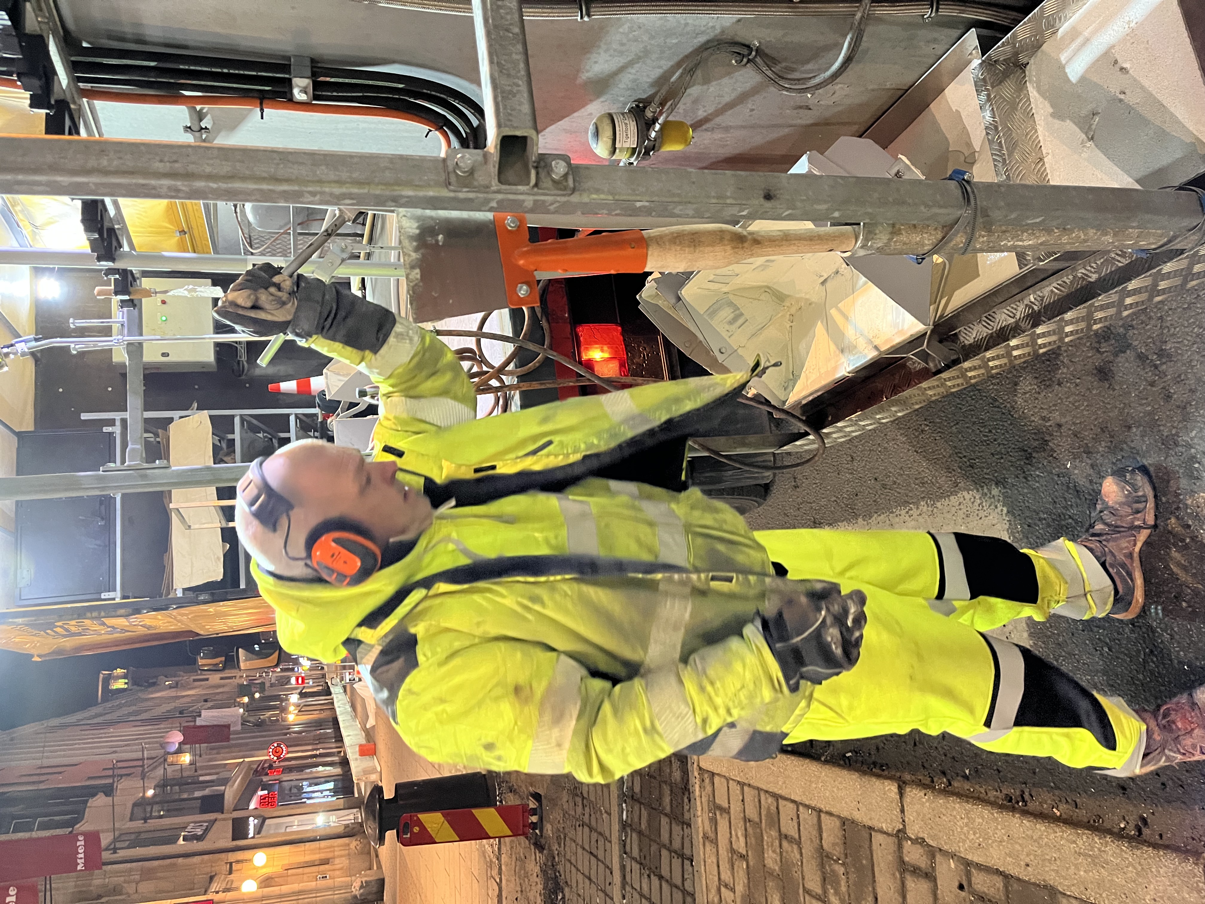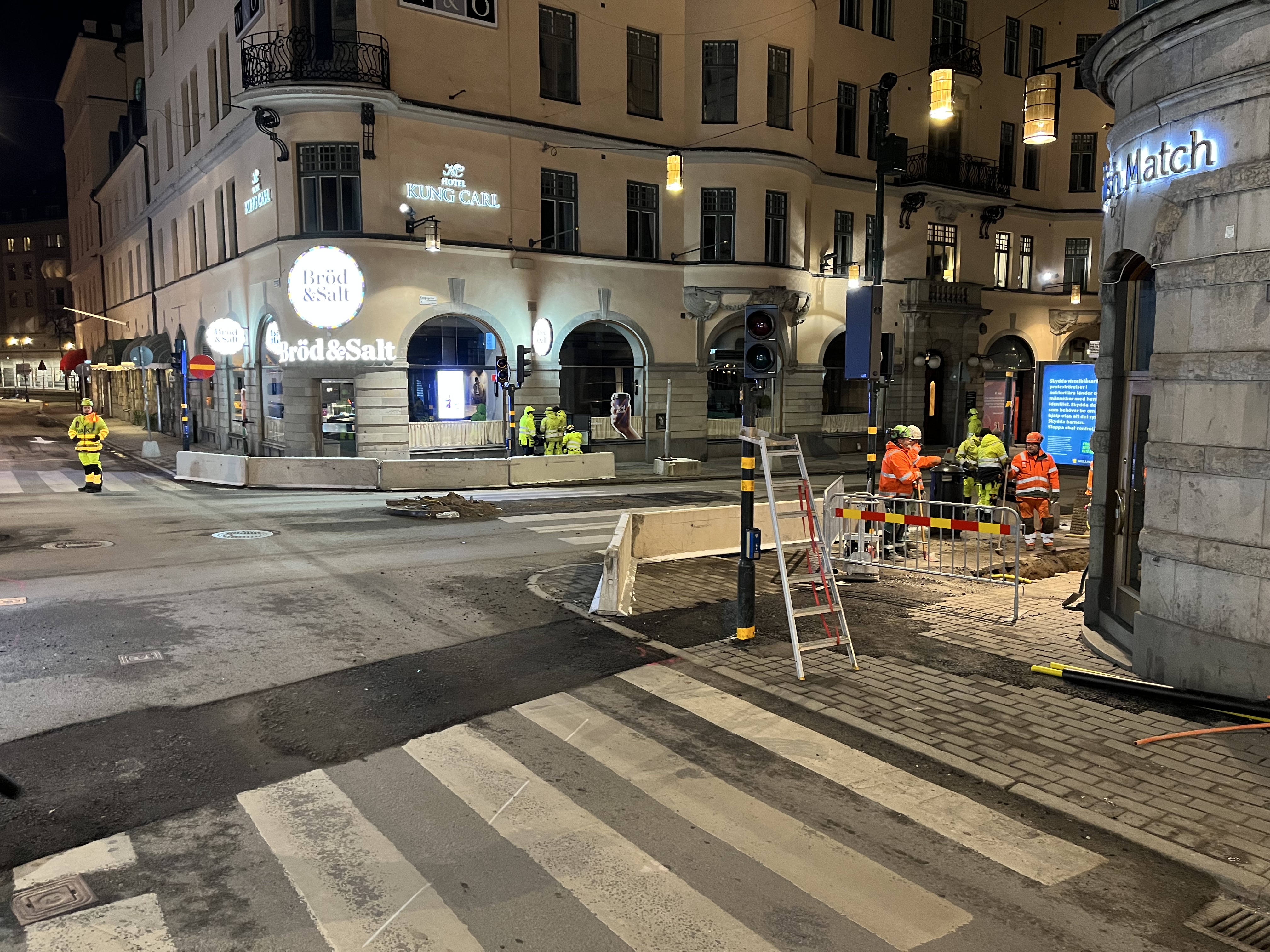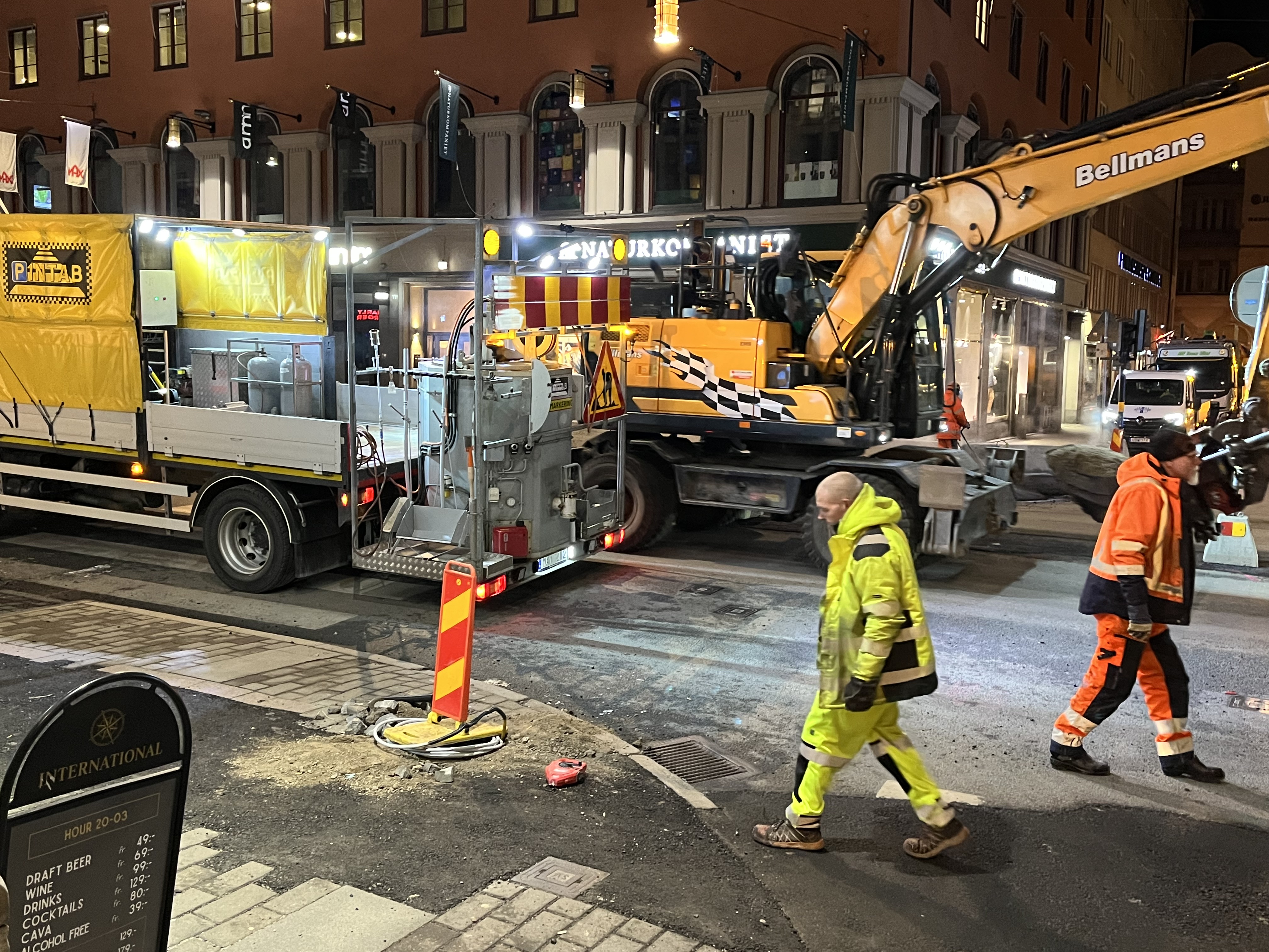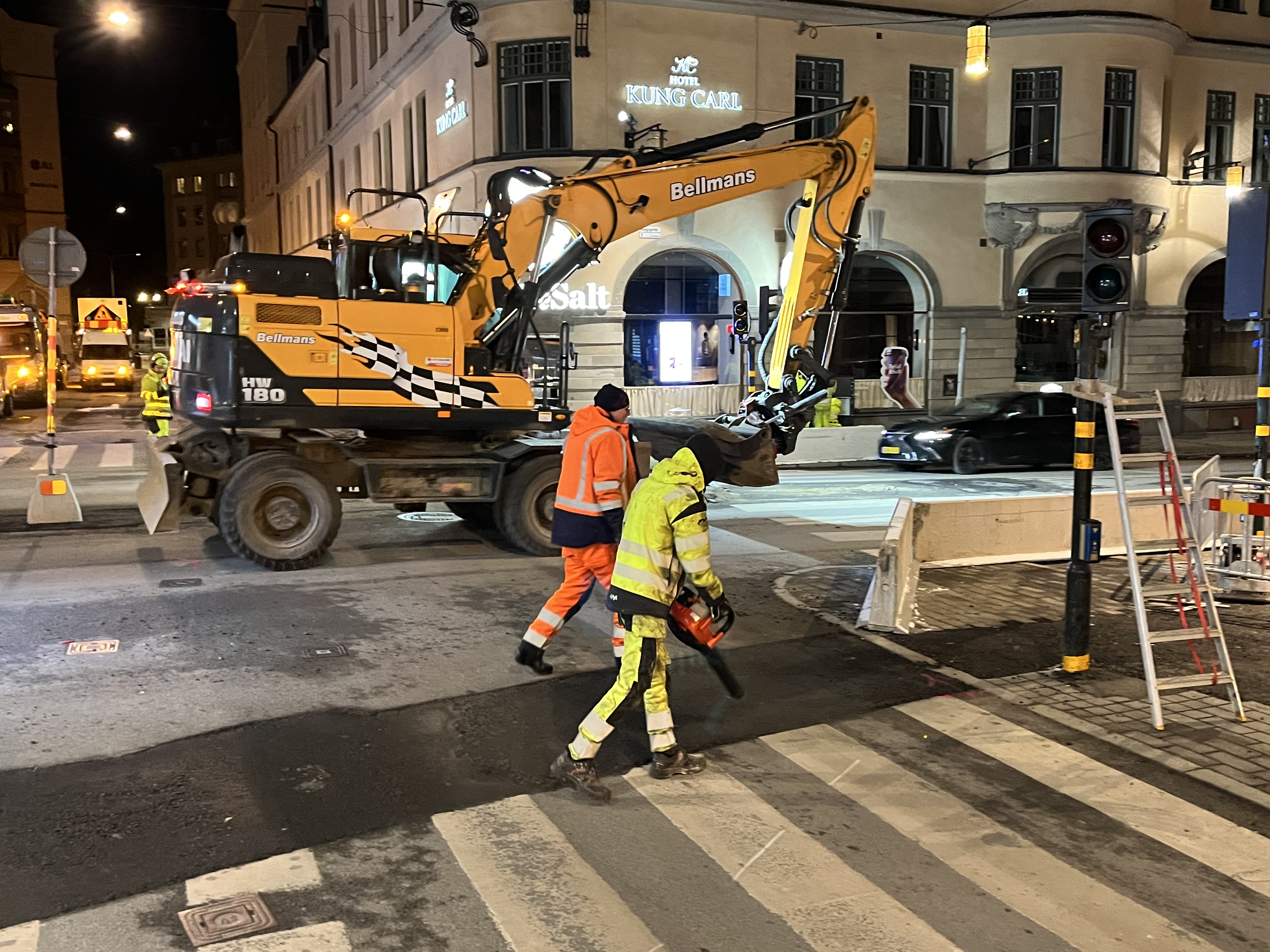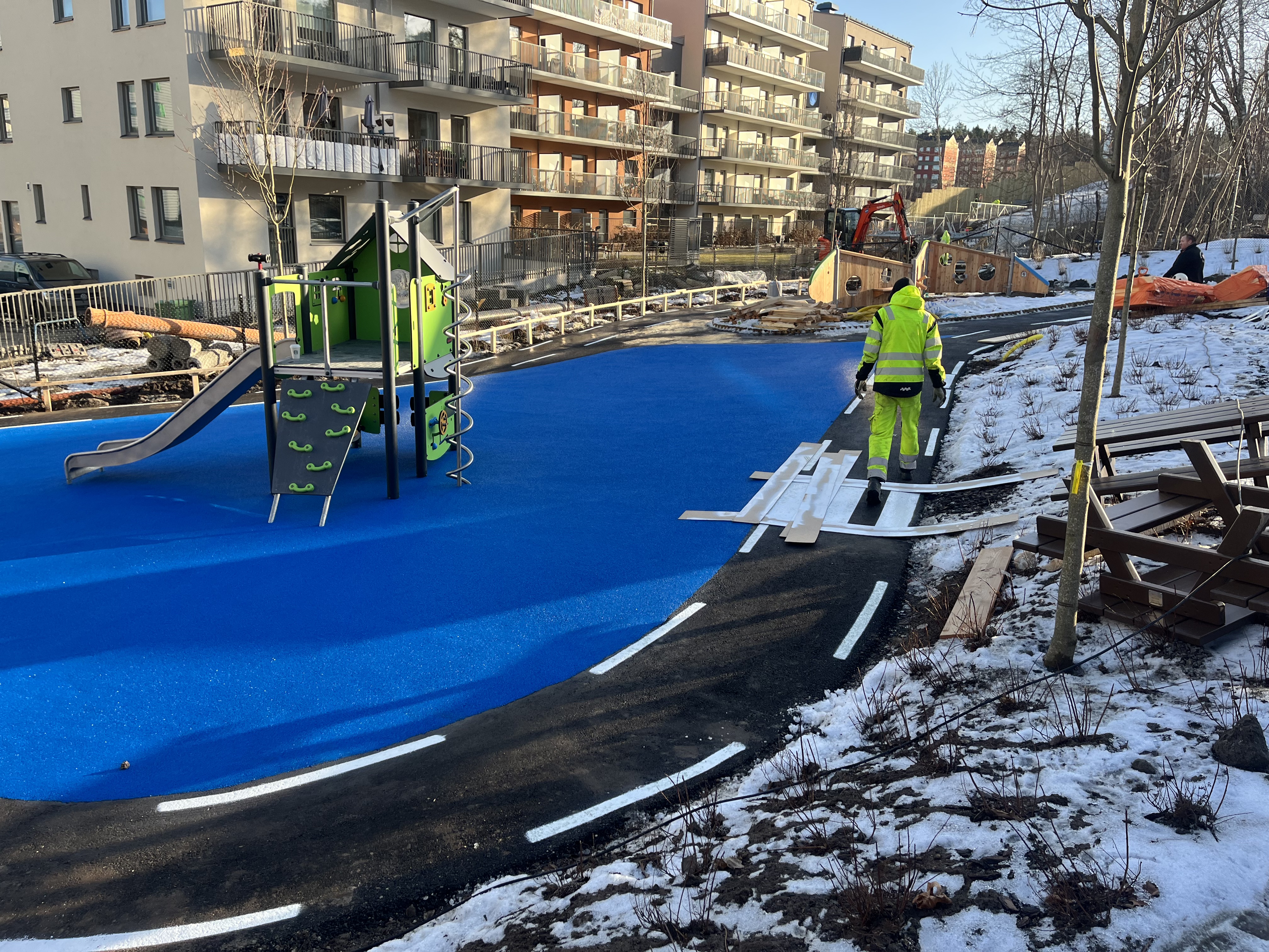 Vi utför tvär- och längsgående vägmarkering med termoplastisk vägmarkeringsmassa. Termoplastmassan hettas upp till 200 grader och läggs ut med handskopor eller extruderbil. Linjerna läggs med tjocklek på ca: 3 mm. Termoplasten innehåller 20% glaspärlor för att ge reflektans. Vi målar vägar, parkeringar gång- och cykelbanor mm.