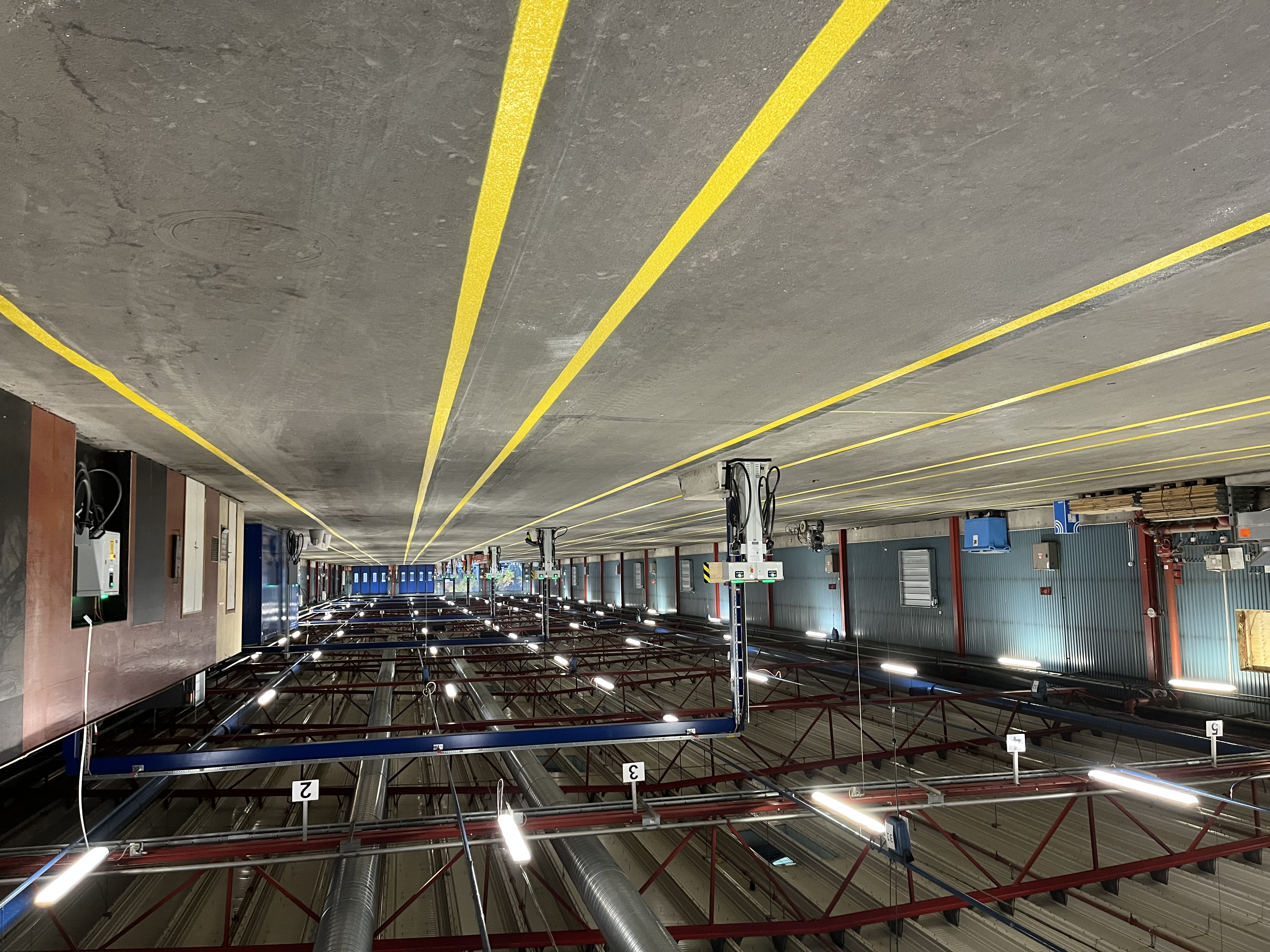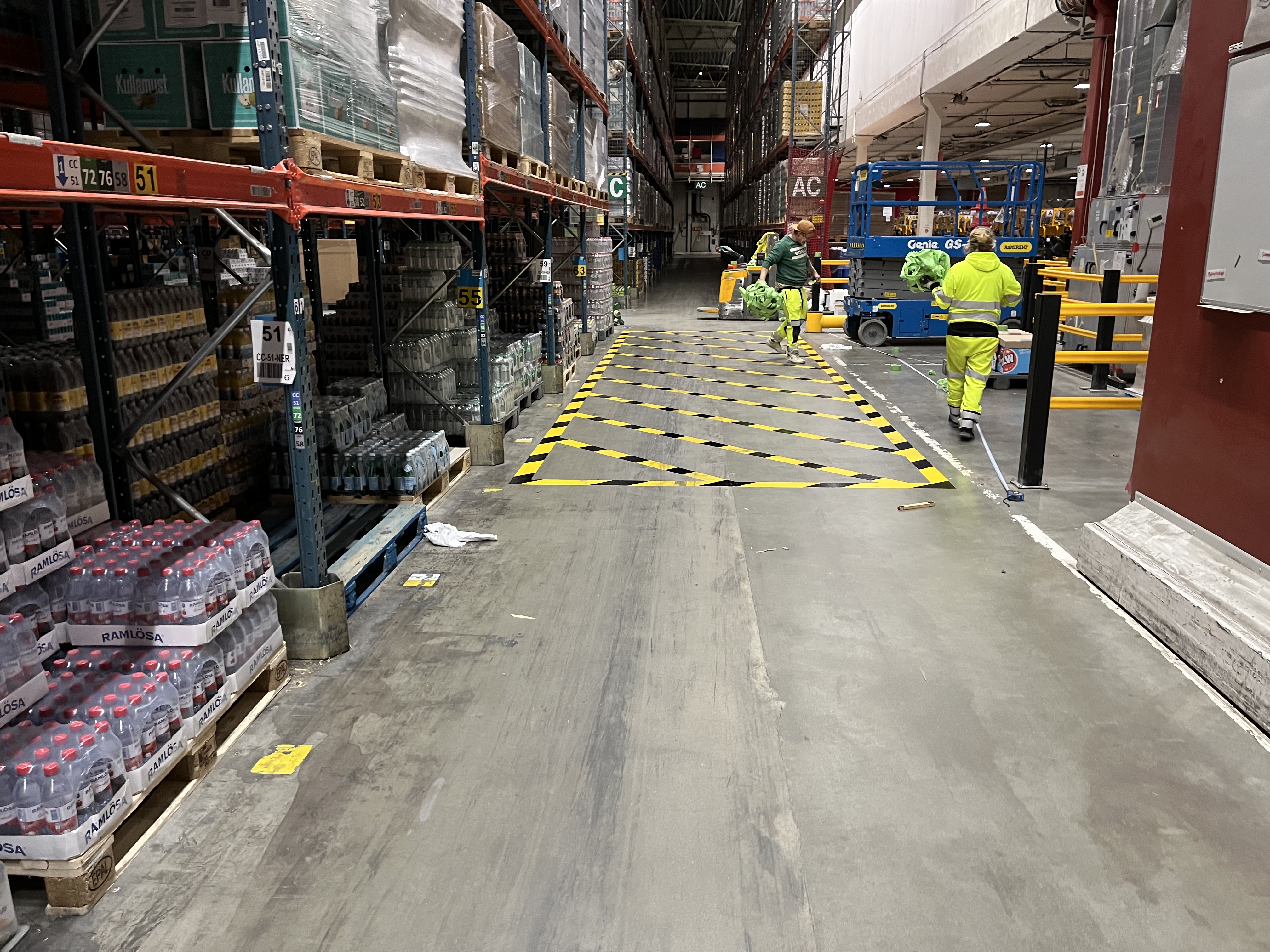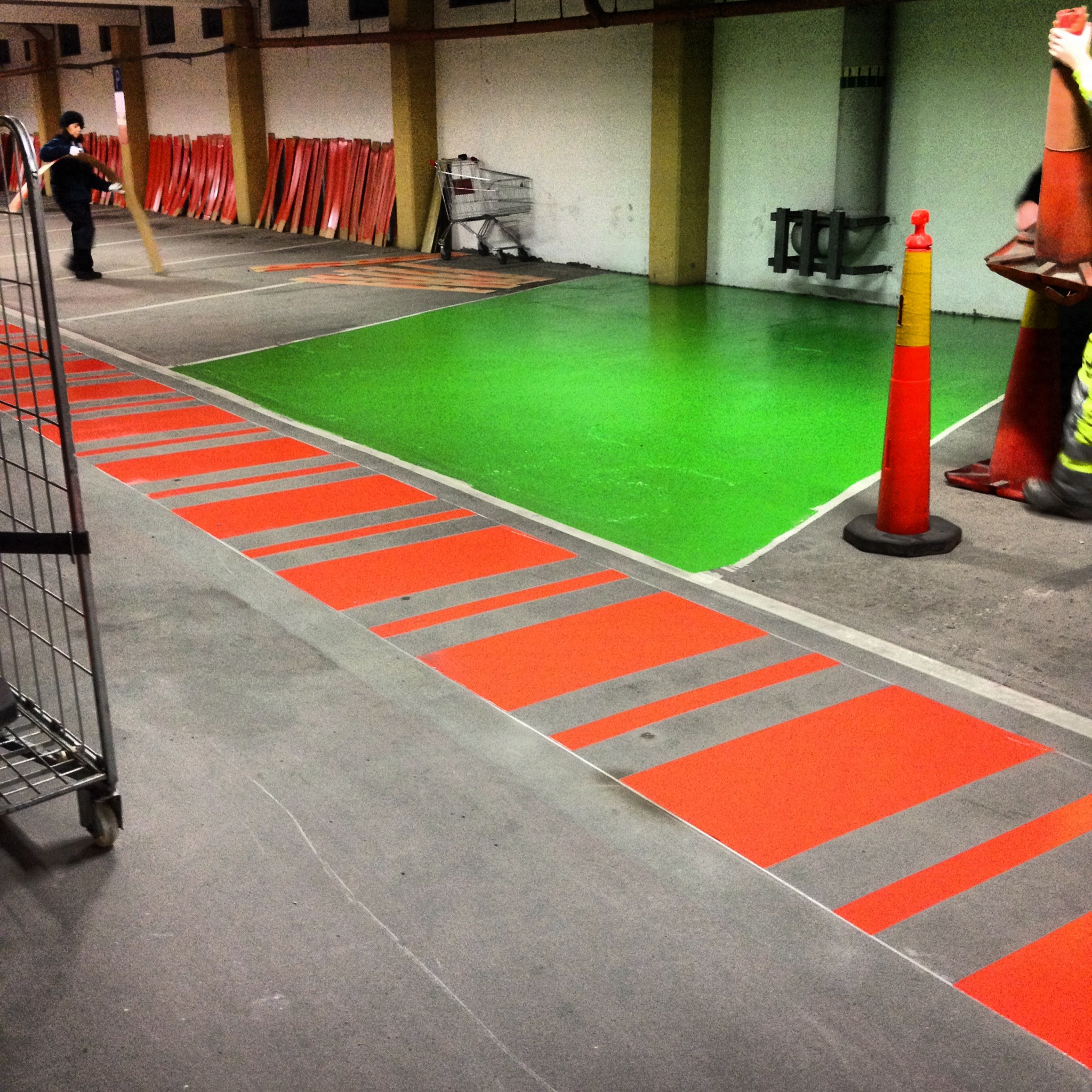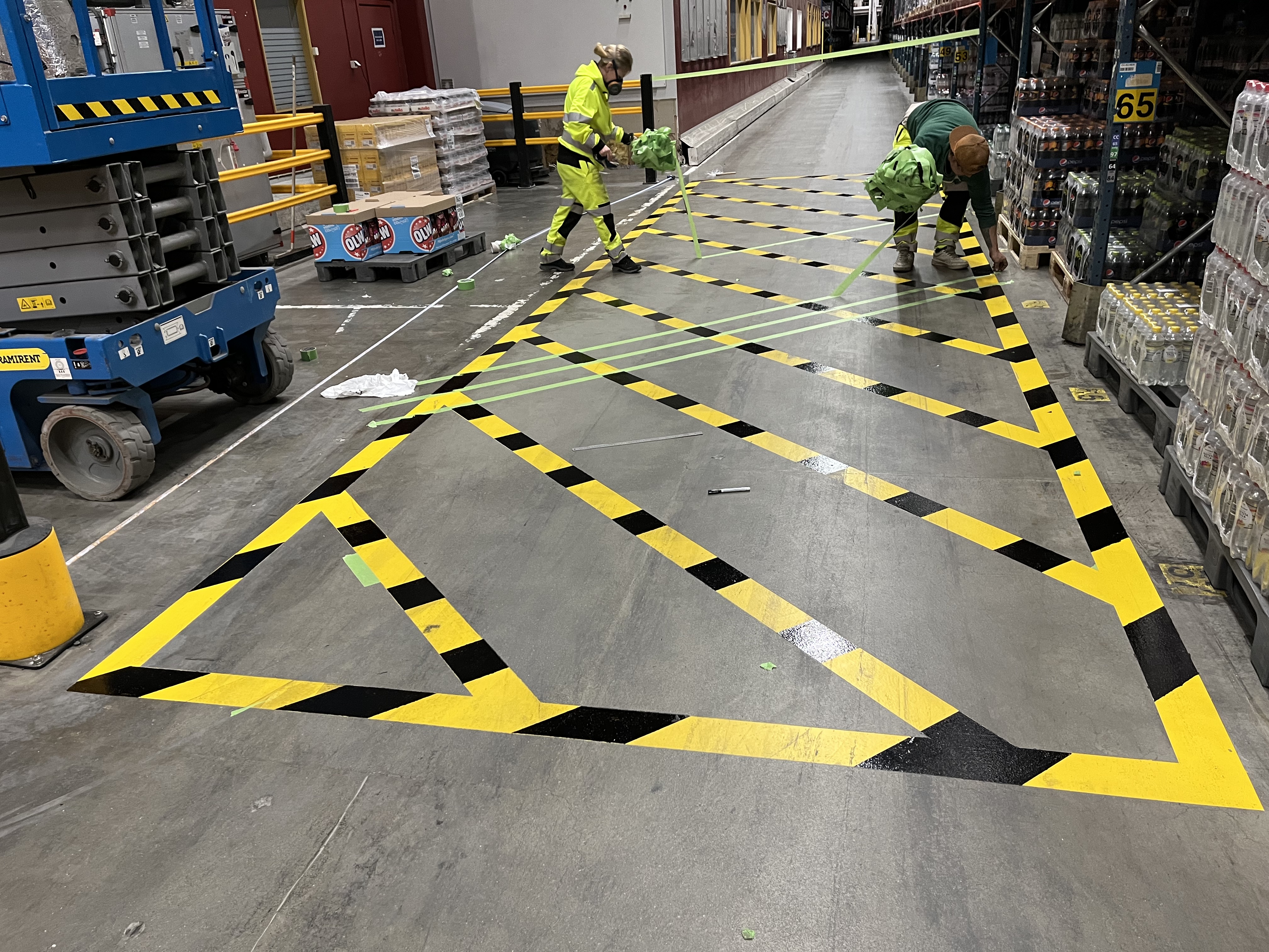 Vi utför linjemålning med 2 komponent polyurethanelack 2 K färgen är mycket slitstark och lämpar sig bra till trucklinjer och gångbanor inom industri och logistik.